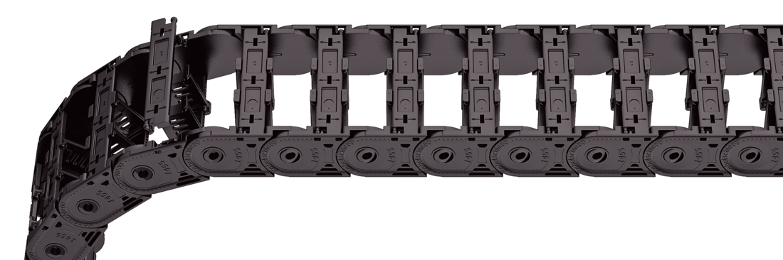 Für Anwendungen mit Querbeschleunigungen und auf der Seite liegende Anwendungen sind Trennstege mit Arretierungsnocken verfügbar. Hierbei rasten die Arretierungsnocken in den Rastprofilen der Stege ein (Version B).