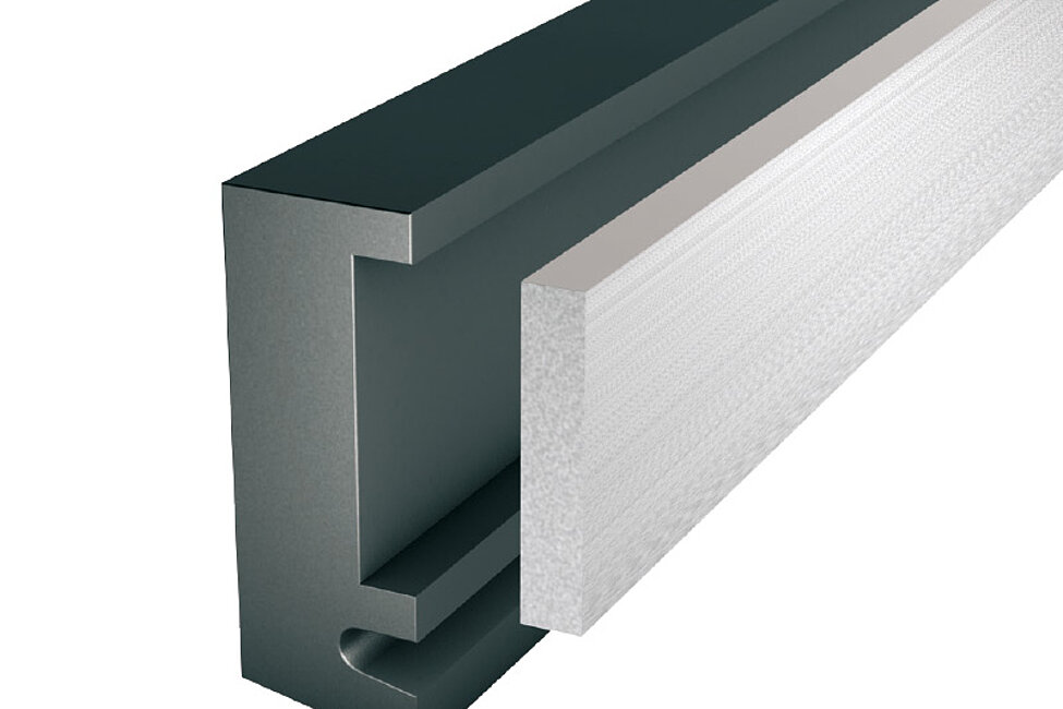 Zum Schutz der Abstreiferlippe vor heißen Spänen und zur Reinigung der Führungsbahn von grobem und festsitzendem Schmutz muss der Bahnabstreifer mit einem Vorabstreifer aus rostfreiem Federstahl oder Messing ausgerüstet werden.