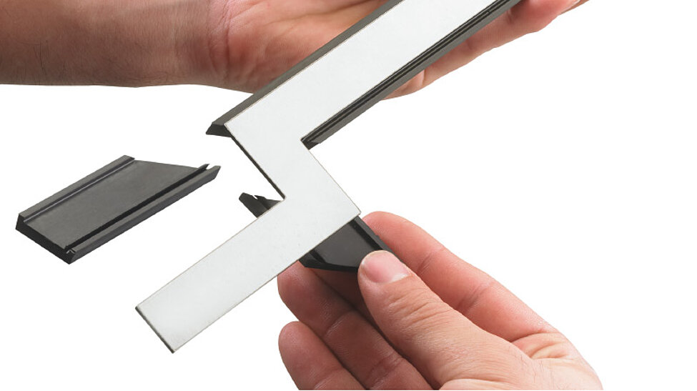 Beim Abstreifersystem BA 65 Vario sind keine speziellen Werkzeuge notwendig: Ein vorgefertigtes Profil aus synthetischem Kautschuk wird entsprechend zugeschnitten. Das Trägerprofil – üblicherweise aus Metall – kann auf einer Laser- oder Nibbelmaschine hergestellt werden.