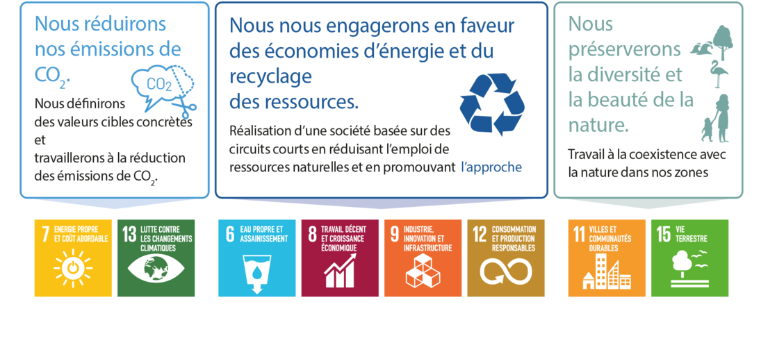 Conformément aux directives de l’Accord de Paris, nous respecterons les objectifs climatiques y ayant été fixés et nous encouragerons les activités visant à réduire les émissions.