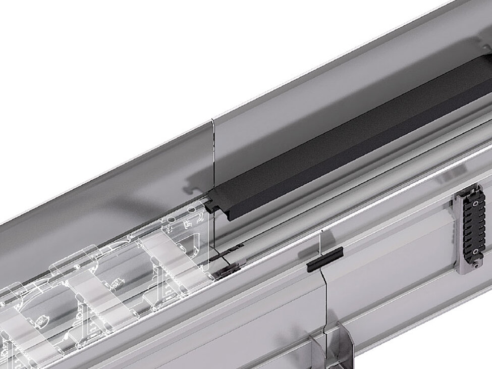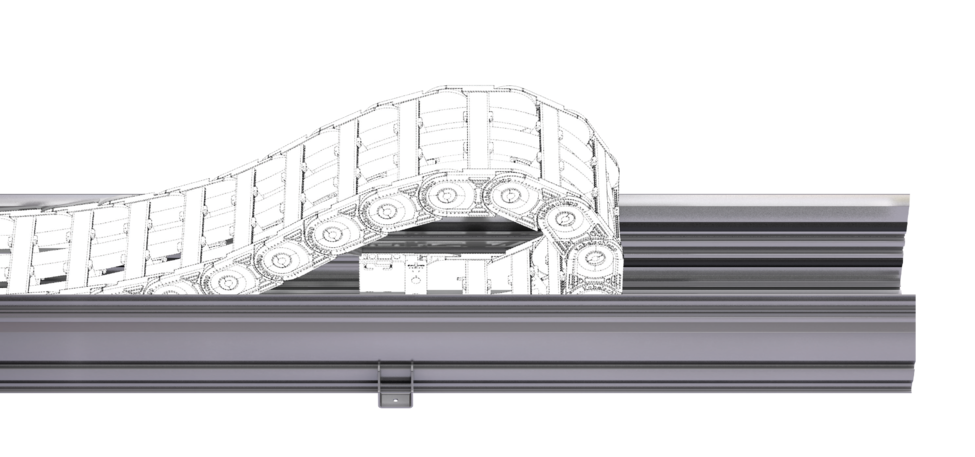 The Alu Guide System (TKAL) for long travel applications and high loads ensures secure guidance and smooth running of the energy chain in a gliding and rolling application.