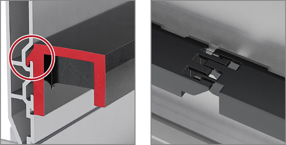 The mounting brackets are mounted at the inside of the channel. The additional joint connectors ensure precise connection of the joints.