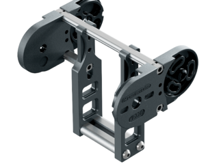 If the cable carrier is positioned so it is rotated by 90° (gliding on the outside of the side band), slide discs snapped onto the side optimize the friction and wear situation.