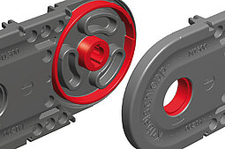 Minimized hinge wear owing to the “life extending 2 disc principle“