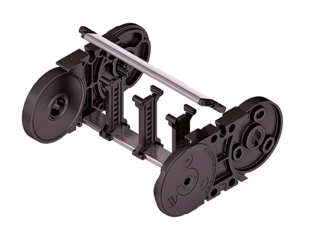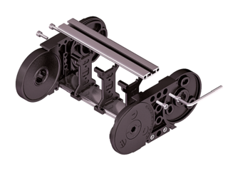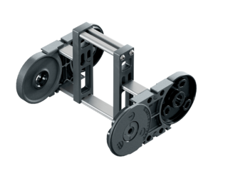- Aluminum profile bars with plastic adapter for medium to high loads and large cable carrier widths. Assembly without screws.