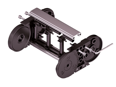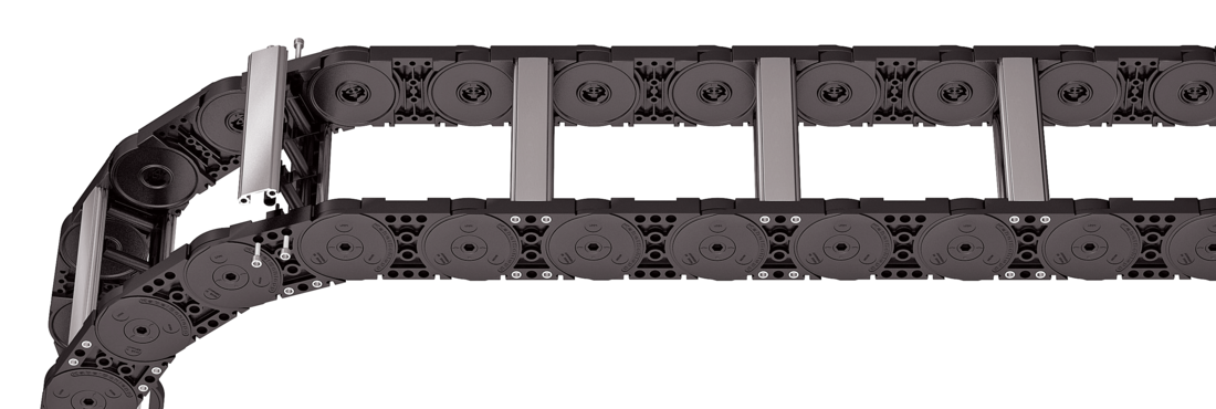 - Aluminum profile bars with rotating plastic rolling stay for highest requirements with gentle cable guiding. Double threaded joint on both sides.