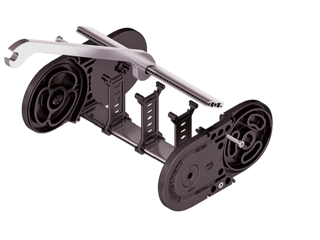 - Aluminum profile bars with plastic ball joint for heavy loads and large cable carrier widths. Assembly without screws.