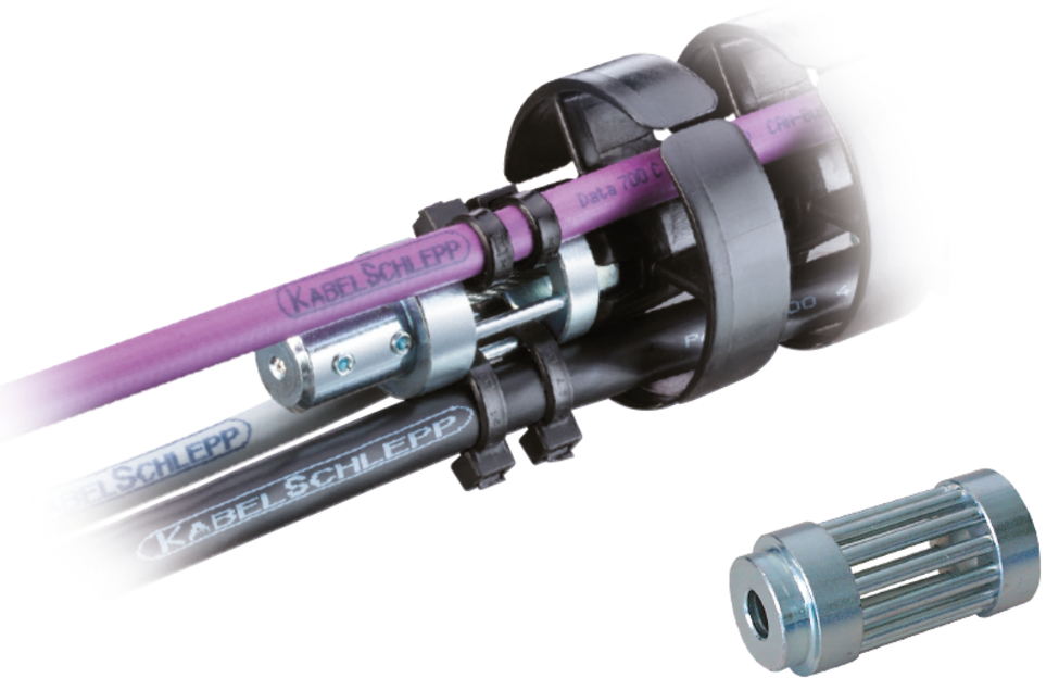 - Protection against hard impacts, excessive abrasion and premature wear as well as limitation of the bending radius through protector