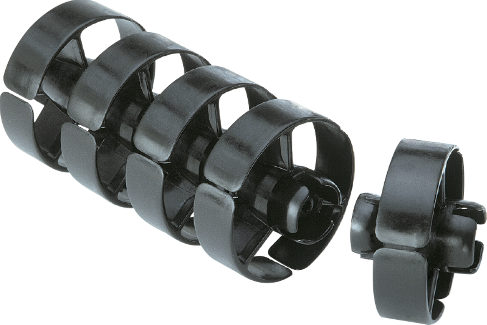 The ROBOTRAX® cobot holder was specially developed for sizes R040 and R056 as well as for corrugated tubes from the FIPLOCK® series (23-48). As a high-quality solution for industrial use, the sturdy steel straps offer non-slip support up to 100 N centrifugal force and thus ensure the trouble-free function of the cobot and the attached cables and hoses in continuous operation. It can be mounted on various surfaces and on diameters between 50-130 mm. The anti-twist design, an easily accessible lock and a protective rubber profile provide additional safety and support.