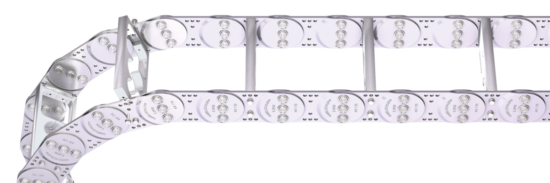 Optimum cable routing in the neutral bending line. Split version for easy cable routing. Stays also available unsplit.