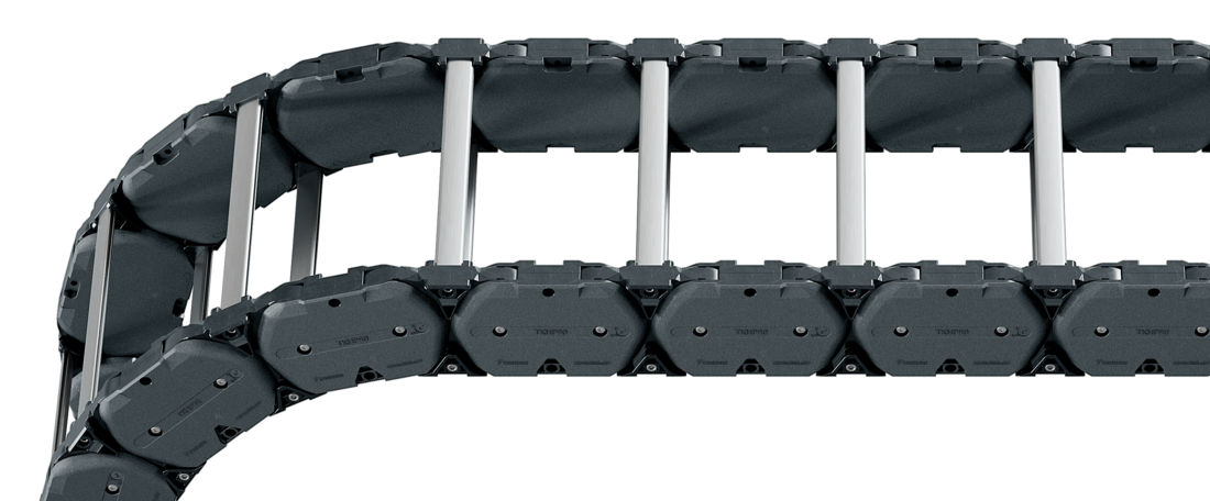 - Aluminum profile bars for heavy loads and large cable carrier widths. Easy threaded connection.