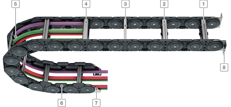 Bolted stays for maximum stability even for large cable carrier widths