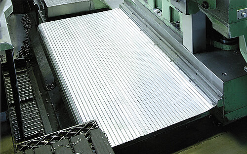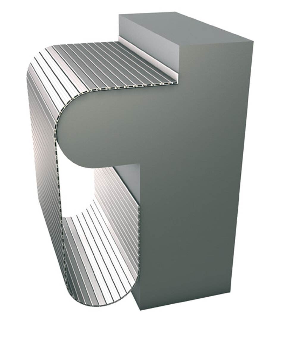 Apron covers can be used wherever space constrictions do not allow the use of telescopic covers. They are positioned directly on the guideway and can be loosely hung on, screwed, bolted, or also wound onto the end of the path without any particular guiding.