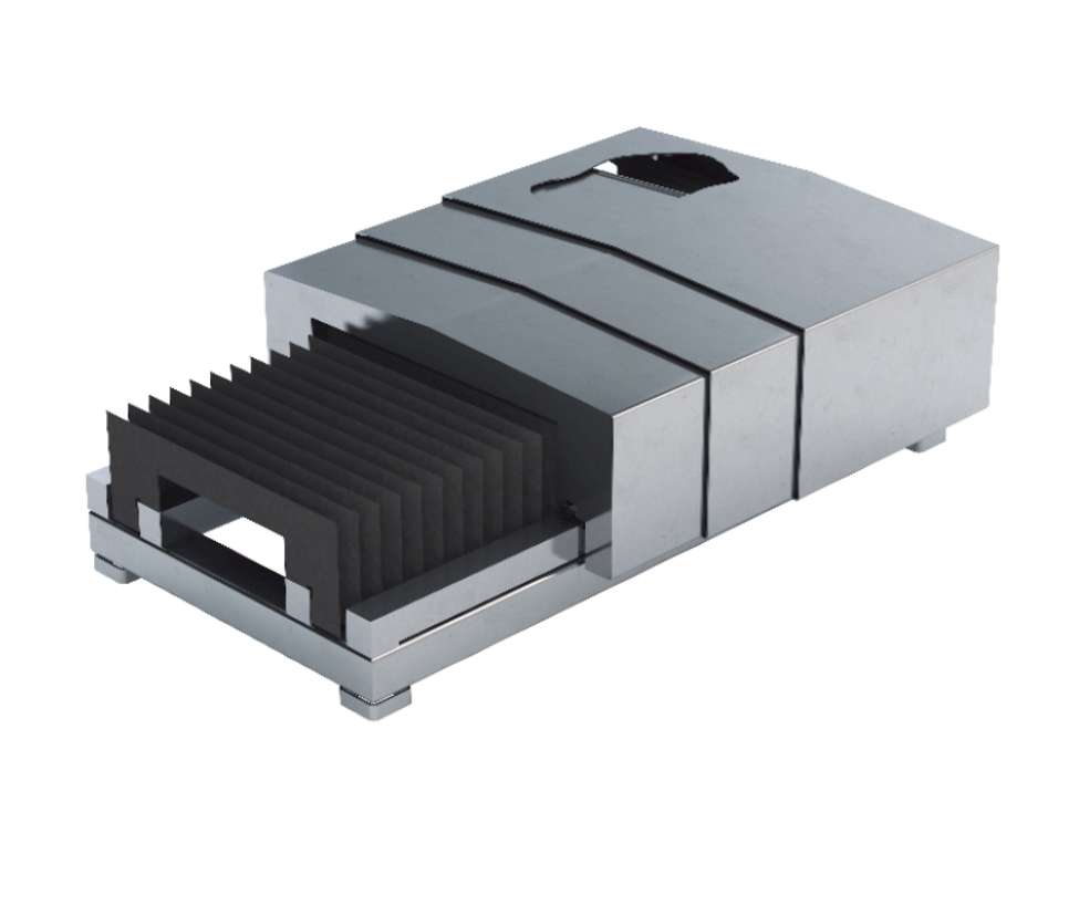 The highest possible leak tightness is often the main requirement for a telescopic cover to be used when machine has hydrostatic guides. These requirements are complied with by integrating bellows. The bellows can be installed between the individual compartments or continuously under the telescopic cover.