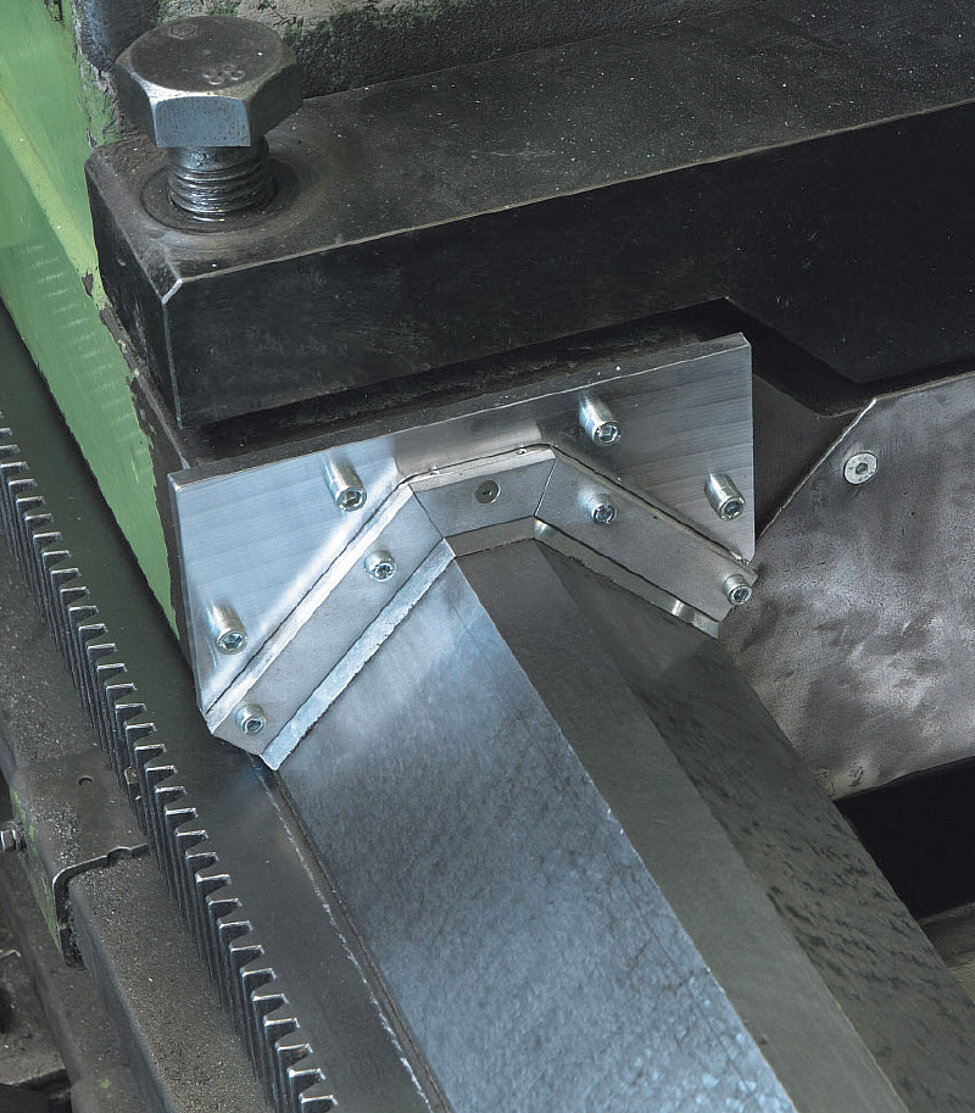 A specially rolled steel plate profile is spot-welded to the boxes and a PUR scraper lip is pressed in.