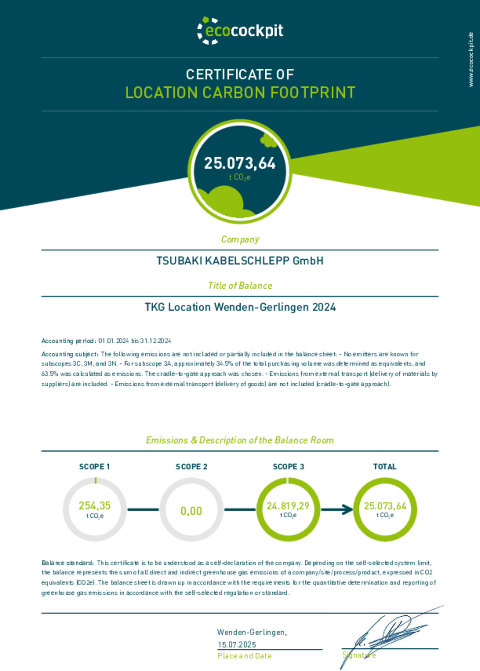 The site analysis includes scope 1, 2 und 3 in the cradle-to-gate assessment. All Scope 3 subscopes relevant to our company were accounted for within the defined system limits for the first time in 2023.